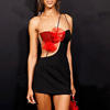 Elegant Red Flower Backless Mini Dress For Women Strapless Backless Bodycon Club Party Dress New