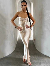Elegant Satin Backless Maxi Dress For Women Gown Summer Spaghetti Strap Sleeveless Night Club Party Long Dress Vestido