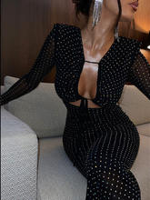 Elegant Sequin Sparkle Maxi Dress For Women Hollow Out Sheer Long Sleeve Bodycon Club Party Long Dress
