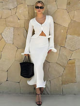 Elegant Skirt Two Piece Sets Women Autumn V Neck Long Sleeve T-shirt And Long Skirt Matching Two Piece Sets