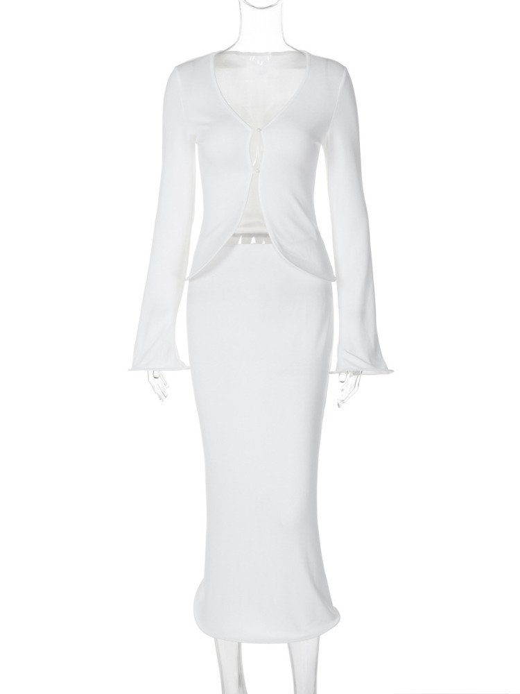 Elegant Skirt Two Piece Sets Women Autumn V Neck Long Sleeve T-shirt And Long Skirt Matching Two Piece Sets