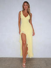 Elegant Sleeveless Ruffles Long Dress For Women Summer Deep V Neck Backless Thigh High Split Maxi Dress