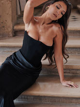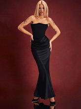 Elegant Strapless Bodycon Maxi Dress Women Black Off-shoulder Sleeveless Backless Club Party Long Dress