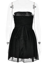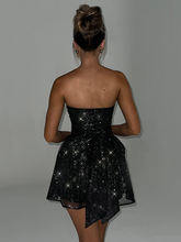 Elegant Strapless Mini Dress Women Black Off-shoulder Backless Pleated Sequins Sparkle Club Party Dress