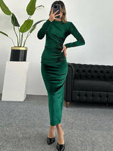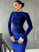 Elegant Velvet Long Sleeve Maxi Dress For Women Autumn Winter O Neck Bodycon Club Party Long Dress