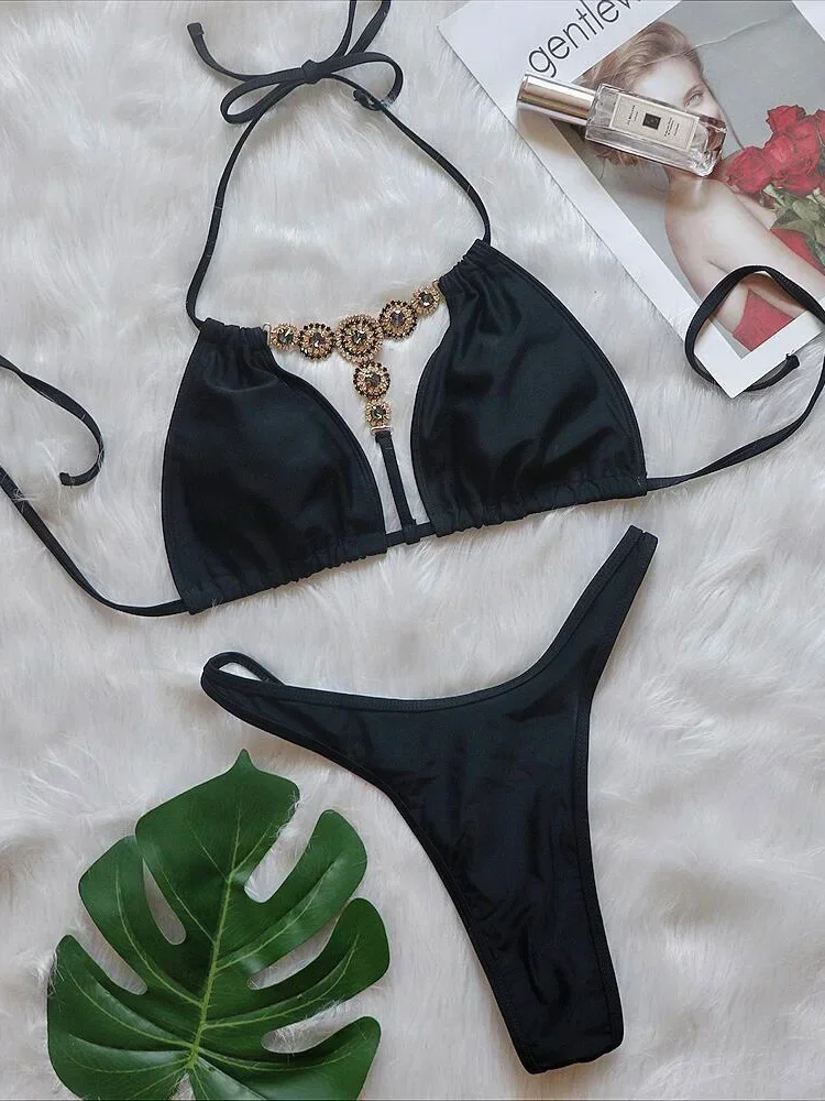 Extreme Mini Micro String Bikinis Diamond Bikini Women Swimsuit Female Swimwear Two Pieces Bikini Set Thong Bathing Suit Swim