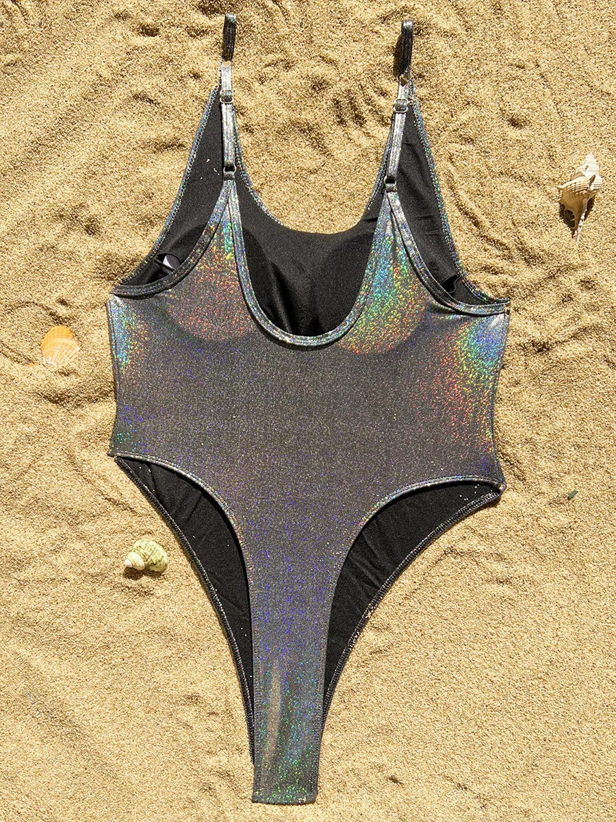 Extreme Mini Micro Thong Glitter Sparkling Women Swimwear One Piece Swimsuit Female High Cut Monokini Bather Bathing Suit Swim
