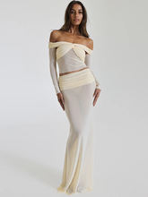 Skirt Two Piece Set For Women Off-shoulder Sheer Long Sleeve Crop Tops And Long Skirt Two Piece Sets