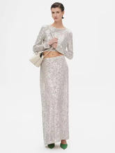 Sparkle Skirt Set Women Autumn T-shirt And Skirt Sequins Sets Female Glitter Long Skirt Two Piece Set 2023