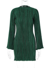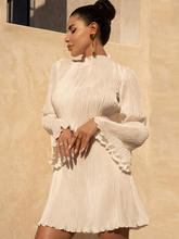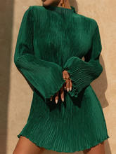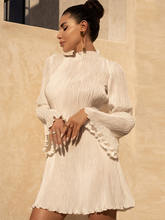 Flare Sleeve O Neck Pleated Mini Dress For Women Robe Autumn Long Sleeve Ruched Short Dress Clubwear Vestido