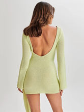 Floral Draped Backless Knit Mini Dress For Women Solid Long Sleeve Ruched Dress 2025 Knitwear