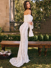 Floral Lace Off-shoulder Maxi Dress For Women White Strapless Backless Long Sleeve Bodycon Club Party Long Dress