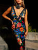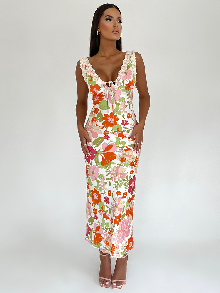 Floral Print Backless Maxi Dress For Women 2025 V Neck Sleeveless Bodycon Long Dresses Ladies Elegant Dress