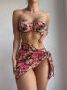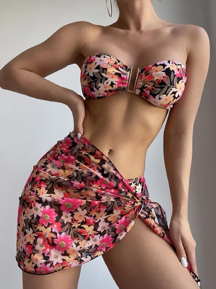 Floral Print Strapless Bikini 2025 Women With Beach Skirt U Wire Swimwear Female Swimsuit Beachwear Bathing Swimming Swim Suit