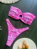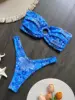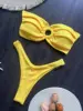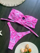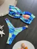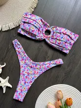 Floral Printed Wrinkled Bandeau Bikini Female Swimsuit Women Swimwear Two-pieces Bikini Set High Cut Bather Bathing Suit Swim
