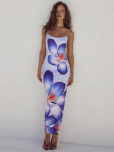 Floreal Print Long Dress For Women Gown Summer Spaghetti Strap Sleeveless Backless Bodycon Midi Dress Elegant