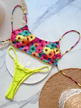 Flower Print Mini Micro Thong High Cut Bikini Female Swimsuit Women Swimwear Two-pieces Bikini Set Bather Bathing Suit Swim Lady