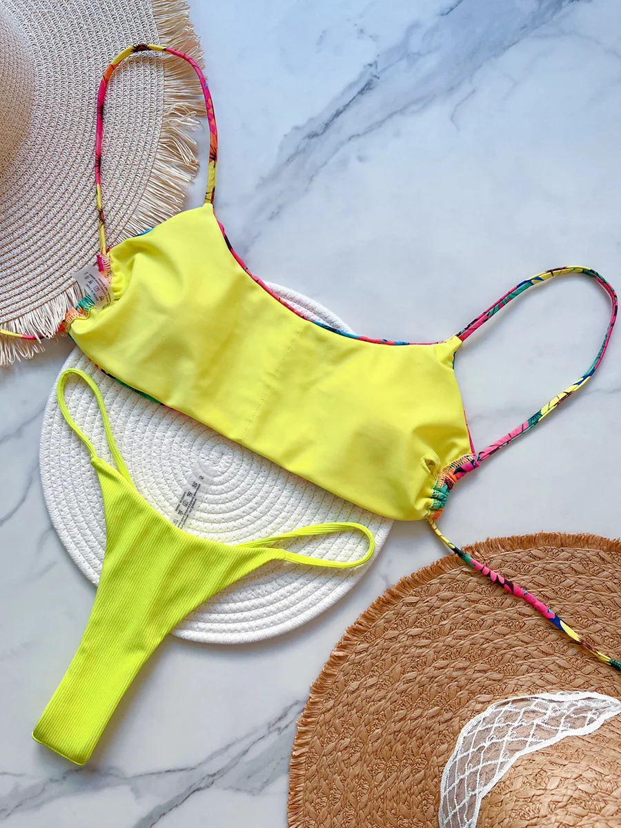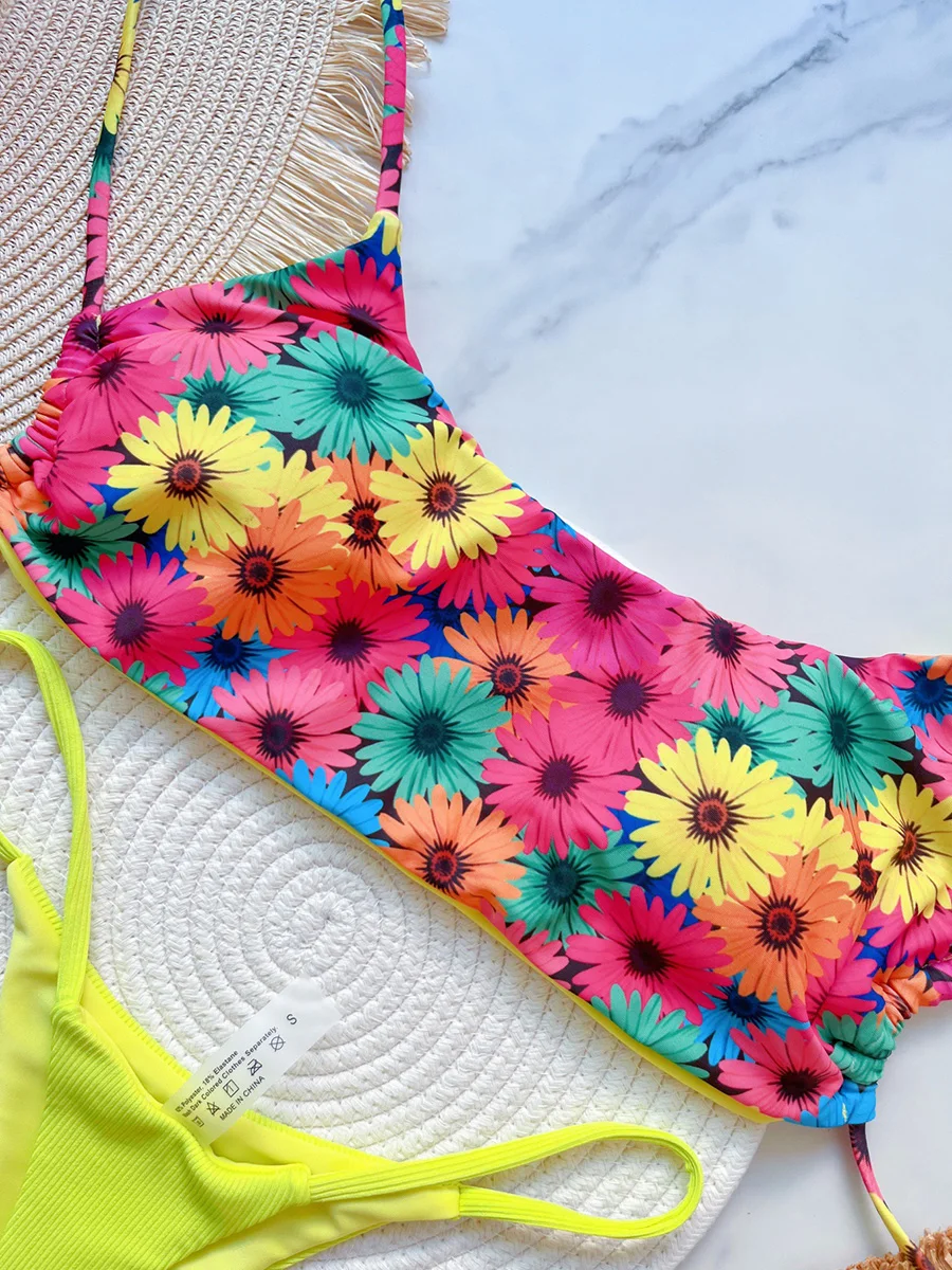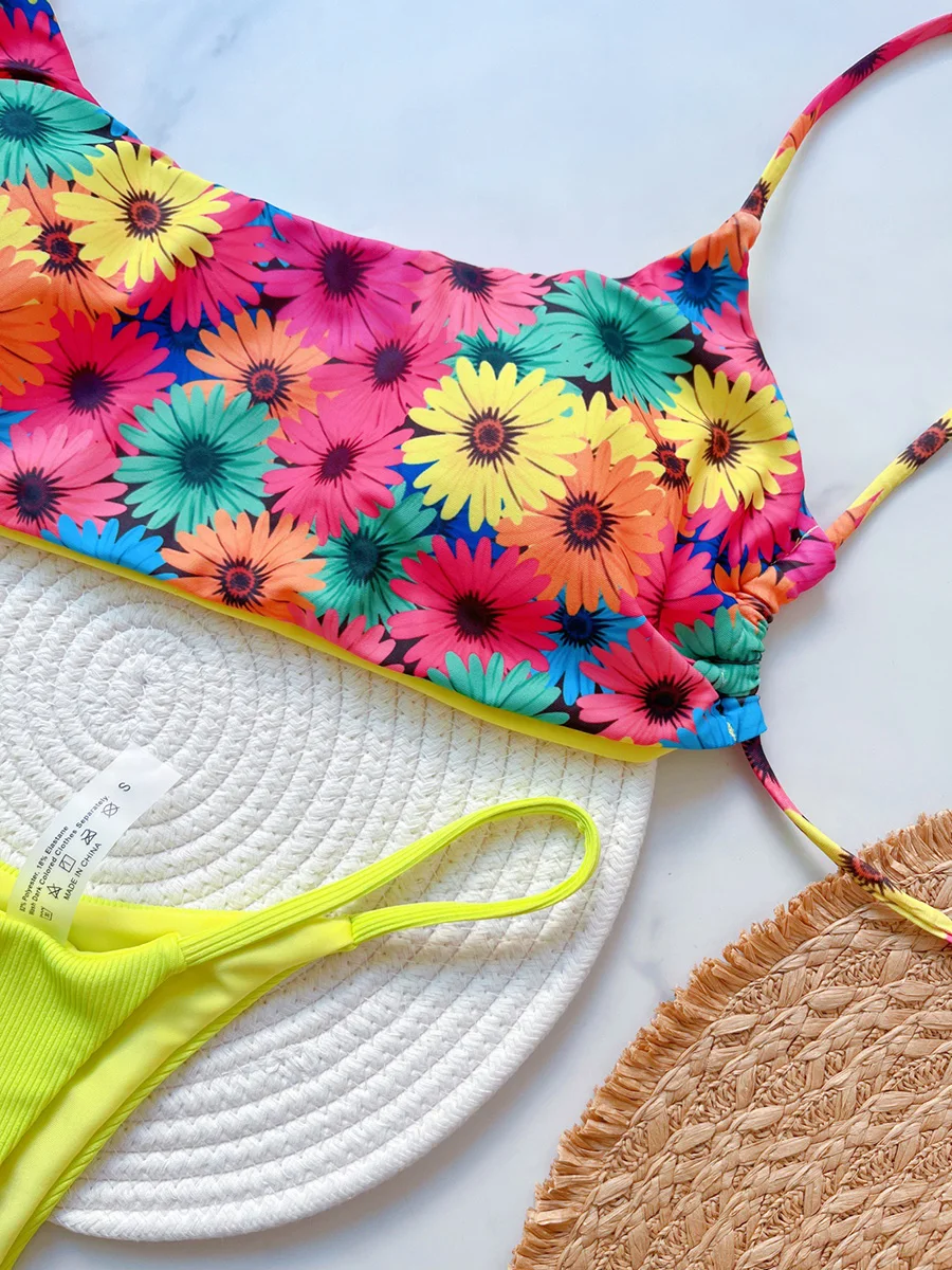 Flower Print Mini Micro Thong High Cut Bikini Female Swimsuit Women Swimwear Two-pieces Bikini Set Bather Bathing Suit Swim Lady