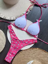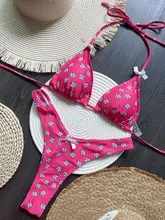 Flowers Print Halter High Leg Cut Bikini Female Swimsuit Women Swimwear Two-pieces Bikini Set Brazilian Bather Bathing Suit Swim