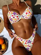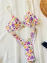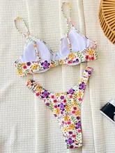 Flowers Printed Underwired High Cut Bikini Female Swimsuit Women Swimwear Two-pieces Bikini Set Triangle Bathing Suit Swim Lady