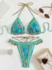 Flroral Printed Halter Ruffled Frilled Bikini Women Swimwear Female Swimsuit Two-pieces Bikini set Thong Bathing Suit Swim Lady