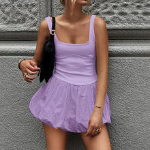 Folds Patchwork Mini Vest Dress For Women Slim Fit High Waist Beach Dress Sleeveless A-Line Solid Party Female Summer