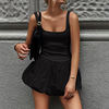 Folds Patchwork Mini Vest Dress For Women Slim Fit High Waist Beach Dress Sleeveless A-Line Solid Party Female Summer