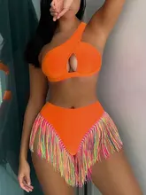 Fringe Tassel One Shoulder High Waist Bikini Women Swimwear Female Swimsuit Two-pieces Bikini Set Hollow Out Bathing Suit Swim