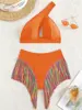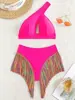 Fringe Tassel One Shoulder High Waist Bikini Women Swimwear Female Swimsuit Two-pieces Bikini Set Hollow Out Bathing Suit Swim