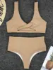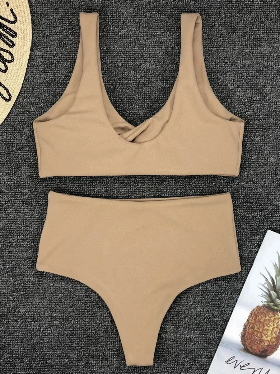 Front Twisted High Waist Bikini Women Swimsuit Female Hollow Out Swimwear Two Pieces Bikini Set Bather Bathing Suit Swim