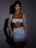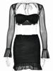 Glitter Mesh Dress Set Women Strapless Flare Sleeve Crop Top And Mini Skirt Sets Club Party Sparkle Two Piece Set
