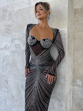 Glitter Mesh See Through Party Maxi Dress For Women Full Sleeve Bodycon Club Long Evening Dress Vestido