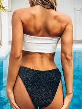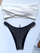 Glitter Sparkling Ribbed Bandeau Bikini 2025 Women Swimsuit Female Swimwear Two piece Bikini Set Bathing suit Swim Beachwear