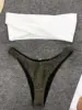 Glitter Sparkling Ribbed Bandeau Bikini 2025 Women Swimsuit Female Swimwear Two piece Bikini Set Bathing suit Swim Beachwear
