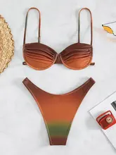 Gradient Wrinkled Underwired Brazilian Bikini Women Swimwear Female Swimsuit Two-pieces Bikini Set Bather Bathing Suit Swim Lady