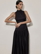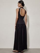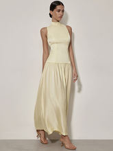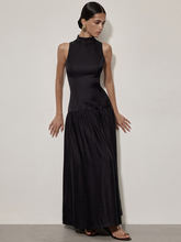 Half High Collar Backless Maxi Dress For Women Solid Color Sleeveless Loose Pleated Dress Elegant Outfits