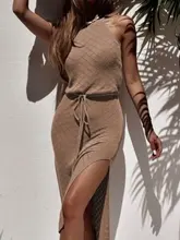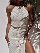 Halter Backless High Cut Crochet Knitted Tunic Beach Cover Up Cover-ups Beach Dress Beach Wear Beachwear Female Kaftan for Woman