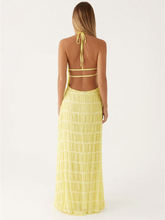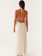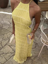 Halter Backless Maxi Dress For Women Spring Summer Lace-up Sleeveless Pleated Beach Holiday Long Dress Elegant