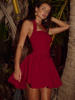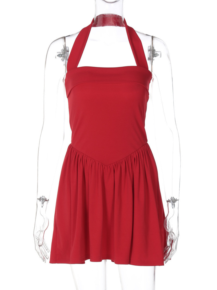 Halter Backless Mini Dress For Women Square Collar Sleeveless A-line Pleated Club Party Elegant Dress