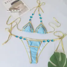 Halter Crystal Rhinestone Diamond Bikini 2025 Female Swimsuit Women Swimwear Two-pieces Bikini Set High Cut Bathing Suit Swim