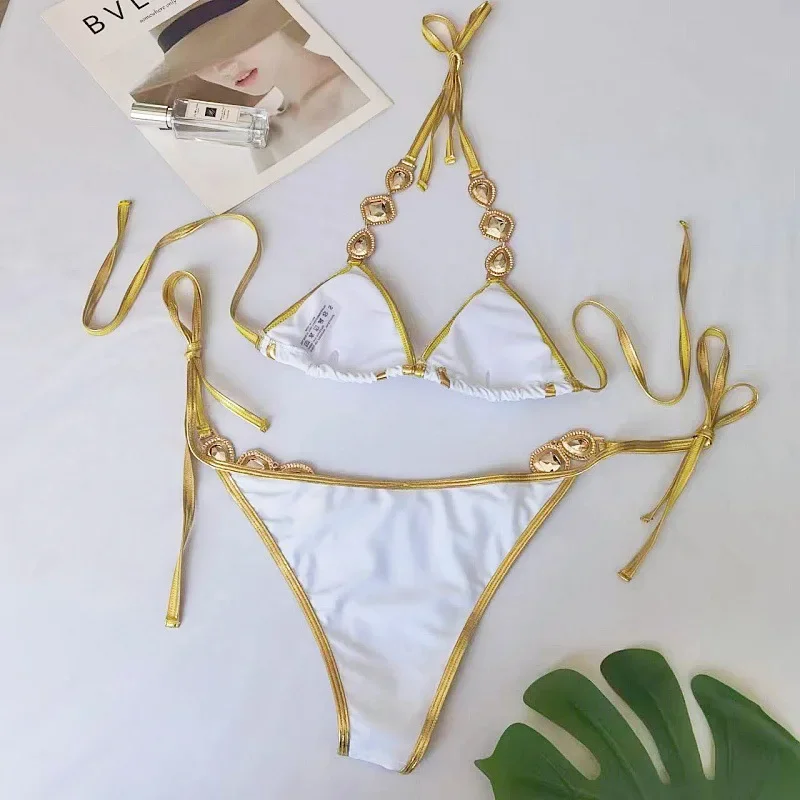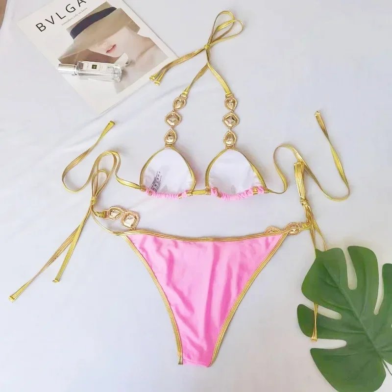 Halter Crystal Rhinestone Diamond Bikini 2025 Female Swimsuit Women Swimwear Two-pieces Bikini Set High Cut Bathing Suit Swim