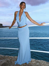 Halter Deep V Neck Backless Maxi Dress For Women Sleeveless High Waist Slim-fit Beach Club Party Dress