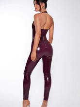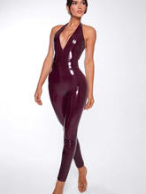 Halter Deep V Neck Jumpsuits For Women Rompers Solid Sleeveless Backless Skinny PU Leather Jumpsuit