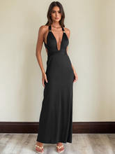 Halter Deep V Neck Maxi Dress For Women Solid Sleeveless Backless Lace-up Club Party Long Dress Vestido