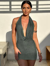 Halter Deep V Neck Mini Dress For Women Robe Sleeveless Backless Bodycon Club Dress Elegant Vestido