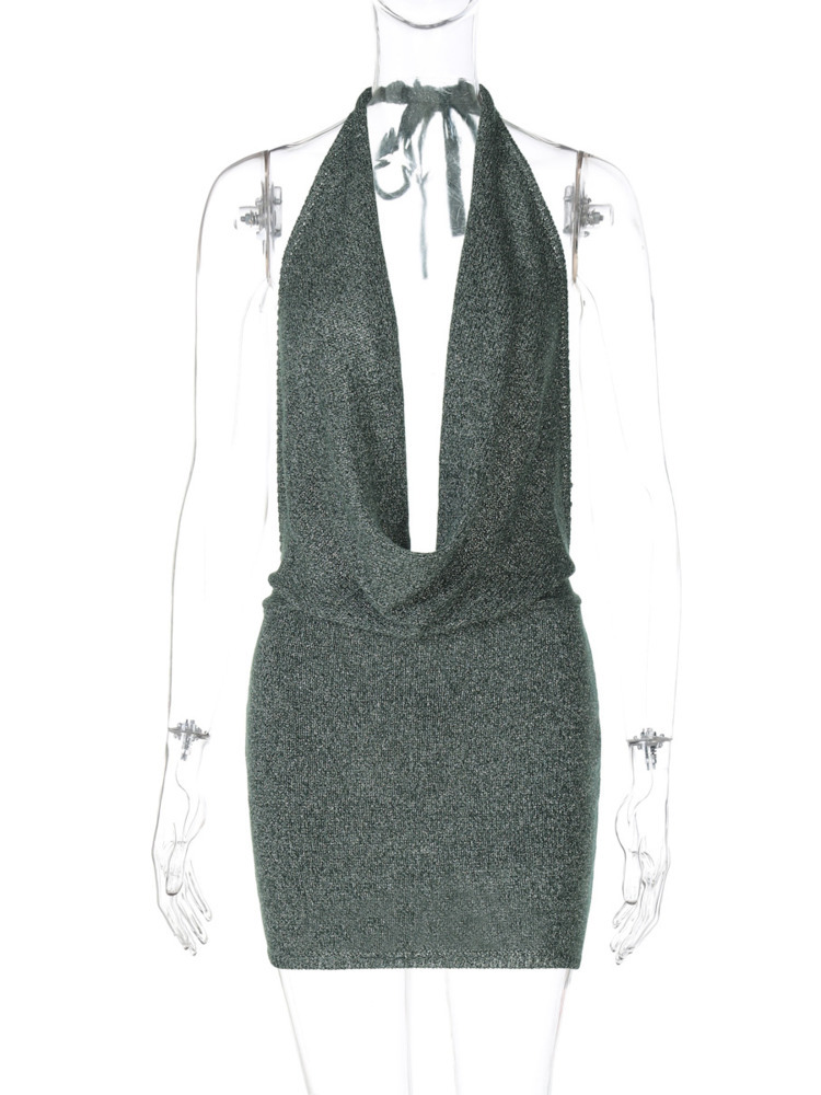 Halter Deep V Neck Mini Dress For Women Robe Sleeveless Backless Bodycon Club Dress Elegant Vestido