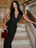 Halter Draped Ruched Maxi Dress For Women Gown Deep V Neck Sleeveless Backless Bodycon Club Long Dress Elegant