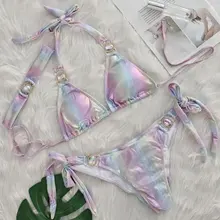 Halter Gradient Rhintstones Diamond Bikini Women Swimsuit Female Swimwear Three Pieces Bikini Set Brazilian Bathing Suit Swim