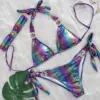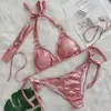 Halter Gradient Rhintstones Diamond Bikini Women Swimsuit Female Swimwear Three Pieces Bikini Set Brazilian Bathing Suit Swim