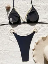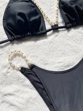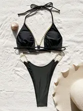 Halter Hollow Out Pearls Bikini Female Swimsuit Women Swimwear Two-pieces Bikini Set High Leg Cut Bather Bathing Suit Swim Lady